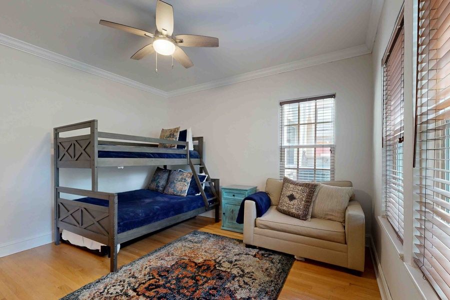 This spacious 3-bedroom home features a fully equipped kitchen, dedicated workstation for remote work, and board games for cozy nights in. The master suite includes a relaxing tub and walk-in shower, while the guest bedroom offers a double bed and a twin-over-double bunk, perfect for kids.