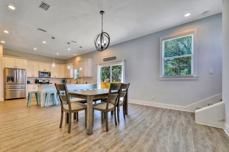 Step into this beach home boasting an open and spacious floor plan, high ceilings, and premium finishes throughout. This rental is located just a short walk from the ocean and the river and there is a dock right at the end of the street. The eat-in kitchen is stocked with all of the essentials for preparing small snacks or chef's meals! Let the kids play out back in the private, enclosed yard while catching a spectacular sunset! Guests of this rental will also have access to a boogie board and three adult bicycles. What's nearby: Located right between beach access location and the dock and boat launch to the river, there is no shortage of activities and fun to be found close by! Local favorite restaurants are within a quick drive including Aunt Kate's and The Reef, offering waterfront dining locations perfect for unwinding. Explore downtown St. Augustine's breweries, museums, and a multitude of additional dining options by taking a quick drive across the bridge. Things to know: Free WiFi Full kitchen with a dishwasher Central air conditioning Outdoor shower