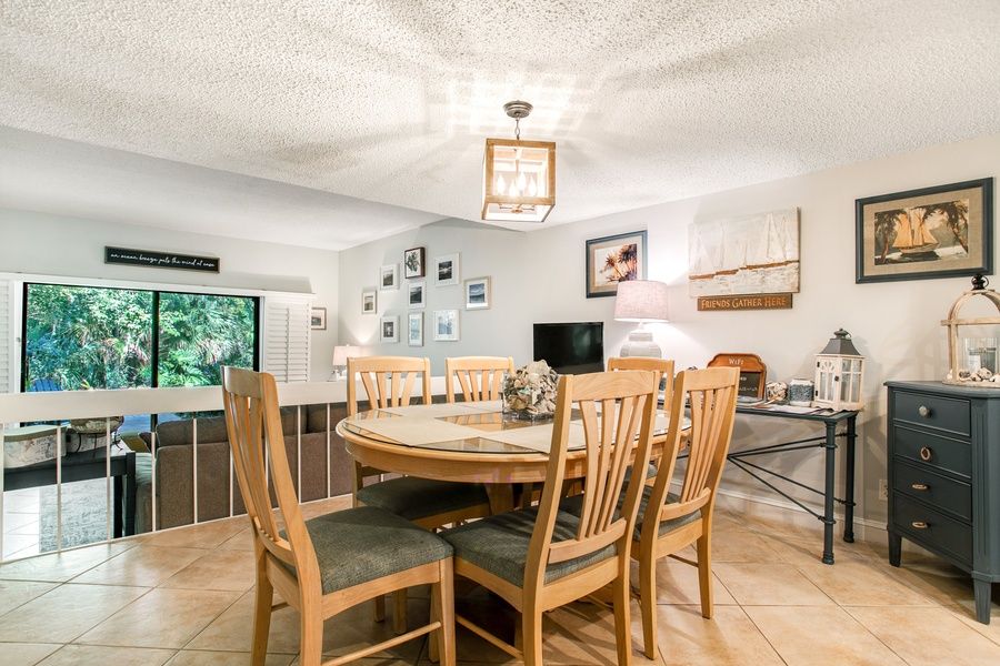 Less than two miles from public beach access, this bright and open two-bedroom home is going to make for a wonderful vacation! Step inside to kick your shoes off after a day at the beach. You'll love spreading out over the comfy sofa to stream your favorite movies and shows on the large flatscreen TV. Off the living room, the furnished patio is a great place to entertain your dinner guests while the kids romp around the enclosed backyard. The full kitchen includes all the granite counter space and appliances the group chef will need to prepare a delicious meal to serve at the dining table with seating for six. You'll have a laundry room available right off the kitchen, so everyone can look their best during your stay, and the central AC will keep everything nice and cool on those hot summer evenings. When evening falls, take advantage of the two well-appointed bedrooms, each with its own private balcony and en-suite bath. Don't forget to take advantage of the free WiFi to research tomorrow's next big adventure before heading out for a game on the shared tennis court or a refreshing swim in the community pool. Things to Know Free WiFi