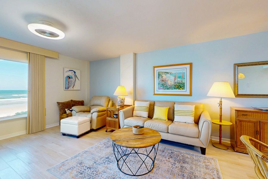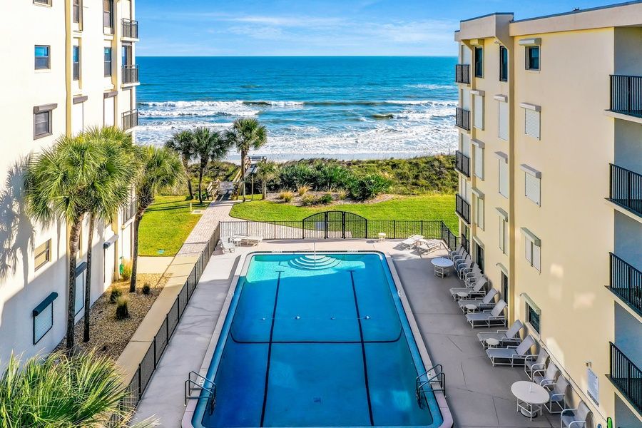 Take in amazing ocean views from this condo's furnished balcony or stay cool in the central air and enjoy it all from within. You'll have direct beach access during your stay, in addition to a shared pool, outdoor shower, tennis court, and basketball court. Anastasia State Park, the St. Augustine Lighthouse and Maritime Museum, and the St. Augustine Alligator Farm Zoological Park are all within 11 miles, while the Castillo De San Marcos National Monument is within 15 miles of this property. You'll love the sunny and sophisticated decor within this lovely vacation rental, all selected to evoke the lovely seaside atmosphere of the Atlantic. The well-equipped, full kitchen includes full-size appliances as well as cooking gear for guest use, which you can use on the prep island that also doubles as a breakfast bar. Dine indoors at the adjacent table or step out onto your balcony to indulge in a perfect alfresco experience overlooking the ocean. After beach days or delicious meals, settle into the main living area and stream all your favorite TV channels using your own accounts. The condo itself is outfitted with other helpful amenities such as a washer/dryer and an adjustable standing desk in one of the bedrooms. Group-friendly by design, everyone will be able to spread out and relax at this lovely condo by the sea. Things to Know
