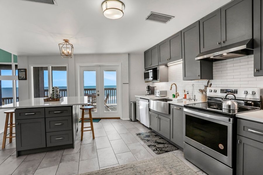 When it's time to head for the beach, don't forget to grab the thoughtfully provided beach gear, then pop home for a mid-afternoon snack. Rinse off the sand in the outdoor shower, then spend the afternoon snoozing in one of the hammocks on the patio down below. Indoor entertainment options include four streaming-capable TVs, including a 75-inch smart TV in the living room, ideal for a family movie night. Those with remote work on their plate will appreciate the free WiFi and window-front desk - if they can tear their eyes from the view. More vacation essentials include a washer/dryer and central air-conditioning. End the evening back outside with a cookout on the grill, dinner alfresco, and a stargazing session over the water. Whether you've come to the beach to relax or explore, you've found the ideal getaway at Ocean Oasis!