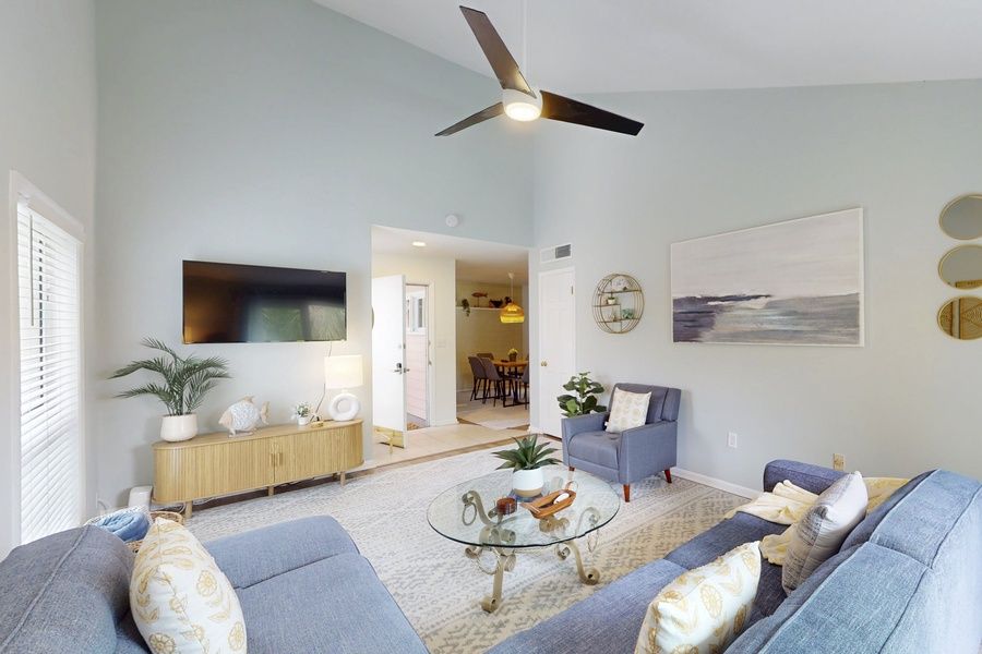 Inside, the condo is thoughtfully designed with modern amenities to make you feel at home. Whip up a meal in the fully stocked kitchen, unwind in the inviting living room with Netflix streaming, or enjoy your morning coffee on the private balcony.