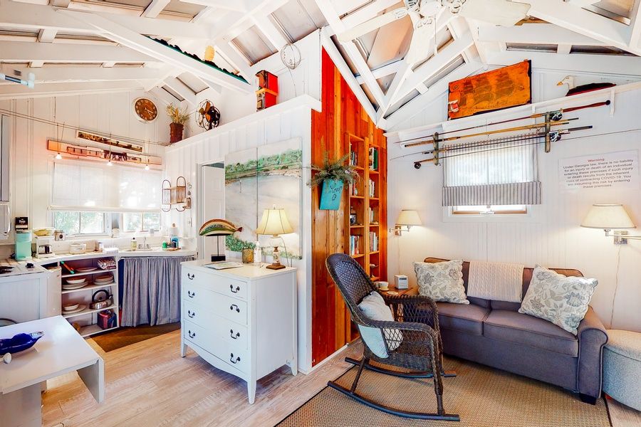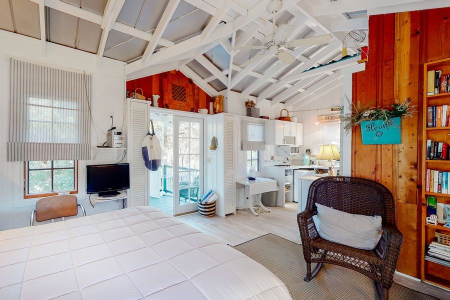 If you're looking for a cozy getaway for just the two of you (or a quiet escape for a solo retreat), consider a stay here at Baby Breezy Tree House. Here, you'll find all that you need in a peaceful setting including a well-equipped kitchenette with enough cookware and utensils for a quick meal and perfect for storing and reheating yesterday's leftovers. Enjoy sitting on the shuttered deck high above the trees where you can put some music on and chill out with one of the provided books, or come back inside to watch your favorite shows and movies on the cable-equipped, flatscreen TV. Whether it be a quick trip or an extended stay, come climb the staircase and unwind awhile at Baby Breezy. We welcome you and hope you enjoy your stay with us on St Simon's Island. What's nearby: Baby Breezy Tree House sits behind a larger beach cottage (currently occupied by the owner)–it's a short walk down a gravel driveway canopied by lots of foliage. You'll enjoy a great location with restaurants, a market, bike rentals, and the beach just a few steps away. St. Simons Island is your own little slice of paradise on the Atlantic Coast, and this home is right in the heart of it all! Walk just a few blocks east for shelling, swimming, and cycling on the beaches. Less than a mile away, visit the St. Simons Island Lighthouse and Museum for a fascinating history lesson, and don't miss Neptune Park, an oceanfront park with pools, water slides, and mini-golf. And when you're hungry, you'll find several restaurants within a mile of this home including Beachcomber BBQ & Grill, Porch for terrific Southern fare, and Mullet Bay for great seafood. You're also only a short walk from a local grocery store. Things to know: Free WiFi