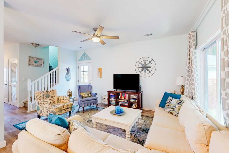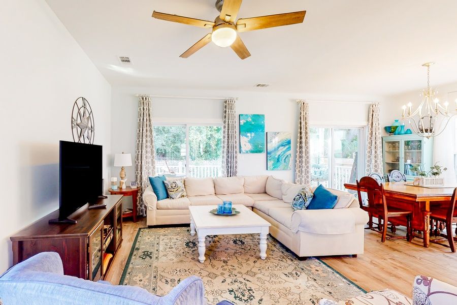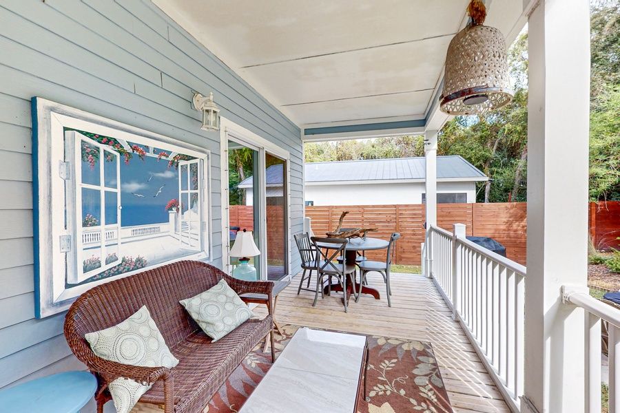 Beautifully appointed and minutes from the sand sits The Sandbox! Offering a serene Saint Augustine retreat for you and yours, this sun-filled home boasts an effortless indoor/outdoor living flow. Under the Florida sunshine, sit and sip in the enclosed backyard, complete with outdoor seating and a gas grill and an fire pit. When you'd prefer to explore the area, head for Fiesta Falls Miniature Golf, the St. Augustine Amphitheater, Anastasia State Park, the St. Augustine Lighthouse, and St. Augustine Alligator Farm Zoological Park. This cozy home is a short 4 minute walk from the beach and is directly across the street from a covered playground at Windswept Acres Park that offers ample parking for extra vehicles. When you return from a long day at the beach you can wash off all that sand with the convenient outdoor shower. From the moment you walk inside, you'll feel right at home amidst high ceilings, plush furnishings, and tropical-themed mementos. While the chef of your group utilizes the kitchen's gleaming countertops and stainless steel appliances, you can tune into your favorite shows on the living room's Smart TV. As comfortable as the last, the home's four bedrooms are places of pure peace with their high-quality linens, private TVs, and central air-conditioning. Additional interior perks include a Pack-N-Play, private washer/dryer, and internet access. As the sun begins to set over paradise, head for the balcony where effortless yellow, pink, and orange hues can be relished. Enjoy a nice relaxing evening by the fire pit for the perfect night cap. Things to Know Check-in time: 4:00 PM. Check-out time: 10:00 AM. All guests shall abide by the good neighbor policy and shall not engage in illegal activity. Quiet hours are from 10:00 PM to 8:00 AM. No smoking is permitted anywhere on the premises. Only 1 pet allowed and should be no more than 25 lbs.