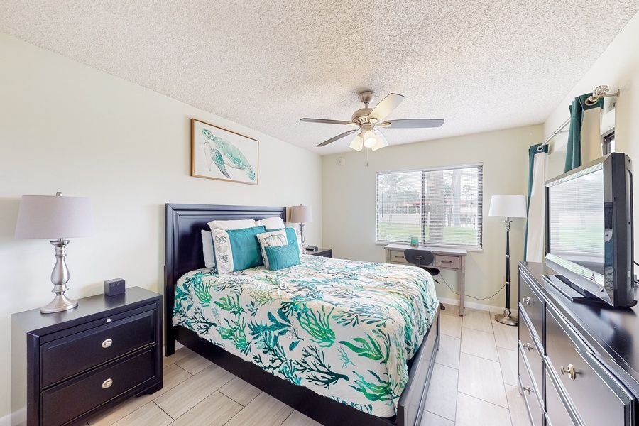 Inside this oasis, you'll feel right at home in the sun-soaked, open-concept living area bursting with elegant coastal decor. Snuggle up on the plush sofa to stream your favorite movies or enjoy a sunset cocktail on the well-furnished patio. A well-equipped kitchen hosts modern appliances and counter seating for the chef in your crew. The bedroom is inviting with soft, cozy linens, a smart TV, and additional patio access--Welcome in the night air and prepare for another day in paradise!