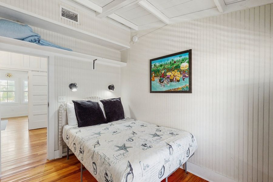 Inside, you'll be met with a bright interior and warm feeling of welcome throughout the space. The open concept promotes togetherness, and no conversation will be lost here! Gather around the grand fireplace to exchange stories, or to take in a movie night on the large TV. Hobby chefs will love preparing grand meals and beach picnic snacks in the full kitchen, equipped with all the cupboard room you'll ever need. A lovely walk-in shower is perfect to wash off the sand and sunscreen at the end of the day. If you need to stay connected, a dedicated workspace is available in one of the guest rooms. With four beds, there's plenty of room for everyone to get a restful night's sleep from the day's activities.