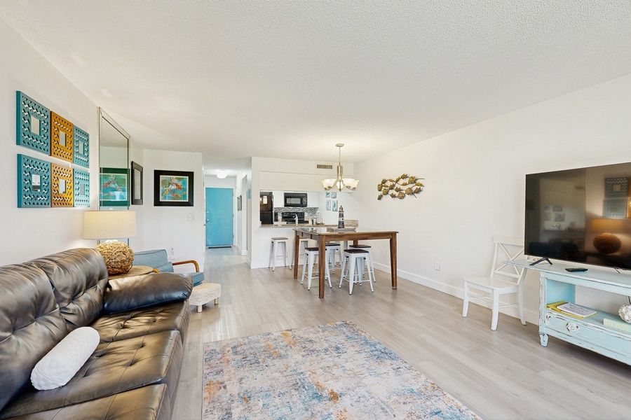 Inside, you'll find all the amenities you need for a comfortable stay, including a fully equipped kitchen with a dishwasher, fridge, microwave, oven, and stove. Relax in the living room with cable TV, a DVD player, and Netflix streaming. The condo also features a washer/dryer, central AC, and a pack-n-play for the little ones.
