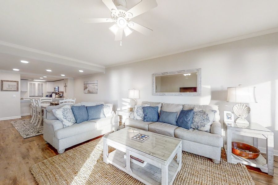 Create your next family memory in this luxurious oceanfront condo on the fifth floor. This beautiful vacation rental is located at The Omni Resort at Amelia Island and includes a private balcony, a well-equipped kitchen, a private washer/dryer, a shared pool, and high-speed WiFi. Enjoy all the beauty of The Omni Resort at Amelia Island, just a short drive to charming downtown Fernandina! Turtle Dunes is located inside The Omni Resort at Amelia Island with 24-hour security in a private gated community. Things to Know Be sure to check out the newly added Pickleball Court! There is some repair work being done on the outside of the building. . Trailers and motorcycles are prohibited in this community. There is a safety netting on the balcony that can obstruct the view while seated.