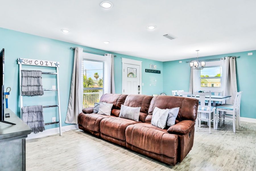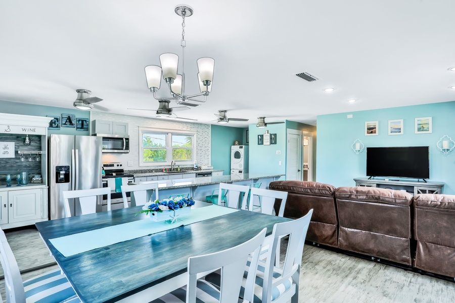 Located in a prime location, within easy walking distance from beaches, shops, and local restaurants, this cool and contemporary vacation rental is ready for your next getaway to St. Augustine. The entire upper level of this home is a gem and only one block away from the private beach walking towards the beach on Palencia St, so you will have no delay in getting your fill of sandy toes and crashing waves. Inside this delightful home, you'll find a modern, well-equipped kitchen with loads of countertop prep space, stainless steel appliances, a breakfast bar, and a coffee bar. Dine together or play some board games at the adjacent dining table for eight, and then relax in the living area while you stream your favorite shows or movies on the smart flatscreen TV (don't forget your account info for your favorite streaming services). Outside, you'll find a furnished deck, a gas grill, shared pool, and plenty of poolside seating for lazy afternoons. Things to Know Free high-speed WiFi Beach towels provided Outdoor shower on-site Snowbird-friendly *Separate entrances are available for the downstairs bedrooms