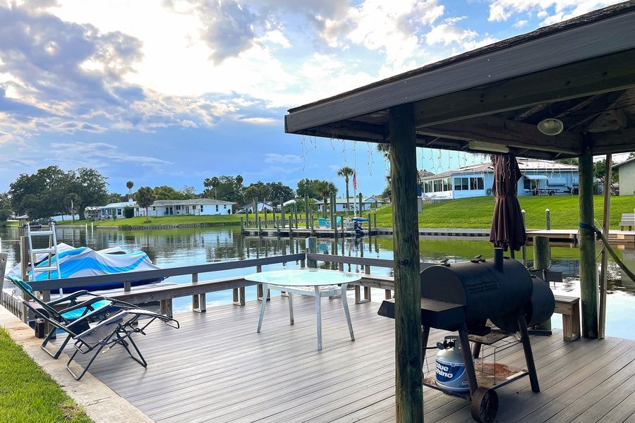 Welcome to your perfect getaway in Palm Coast, FL! This charming riverfront house is ideally situated close to James Holland Park, making it a fantastic choice for families with kids. Bring your fishing poles and paddle boards, as you'll have easy access to the serene waters right from your own dock. The property also includes several kayaks for guests to enjoy, making it easy to set off on a peaceful paddle right from your backyard. Enjoy breathtaking sunsets as you unwind by the water, creating unforgettable memories with loved ones. Just a short drive away, you'll find the world-famous Flagler Beach, where you can soak up the sun or take a leisurely stroll along the shore. For those looking for adventure, Gamble Rogers State Park offers kayak rentals and paddle boarding opportunities, ensuring your days are filled with excitement and exploration. Inside, the house is equipped with a dedicated work station, perfect for those who need to balance work and leisure. With amenities like central AC, WiFi, and a fully stocked kitchen, you'll have everything you need for a comfortable stay. The dog-friendly environment means your furry friends can join in on the fun too! Whether you're looking to relax or embark on thrilling outdoor activities, this Palm Coast home is the ideal base for your vacation. Book your stay today and experience the best of Florida's natural beauty! This property is located in a residential community. Please note the boat and jet skis shown in the photos are not for guest use