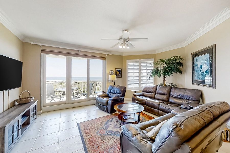 Take in gorgeous Amelia Island sunrises from your private balcony at this second-floor, oceanfront condo located right next door to the Ritz-Carlton. As you step inside, you'll be welcomed by a fully appointed kitchen, an open living and dining area with views of the ocean, and two sets of sliding glass doors that lead outside to the oceanfront balcony - one set in the living room and one in the primary bedroom. Other at-home comforts include free WiFi, a 60-inch HDTV in the living room, HDTVs in both bedrooms, AT&T U-verse, a DVR for recording, and nationwide long-distance phone service. The primary bedroom has a king bed and a private bathroom with a whirlpool tub and a separate shower. The guest queen room has its own bathroom as well. Things to Know There is a large scale state mandated construction project at this association causing noise, loss of pool amenity and workers on property. Full kitchen Weekly rentals (Saturday to Saturday) only from June through mid-August.