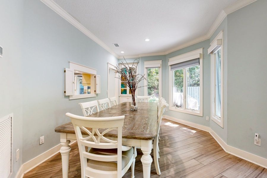 This gorgeous home is very spacious with a perfect layout for large family gatherings! There is a split floor plan with the suite attached. Enjoy having two full kitchens, two living rooms, TVs throughout, high-speed WiFi, an on-site washer/dryer, and the star of the home: a private screened swimming pool. The location of this home is quite convenient; you will be just a short walk to the beach with the beach path right behind the home. This home also features a Pack N' Play, highchair, play saucer, baby seat, and toys and games for the kids. Things to Know Streaming services available using guests' own accounts.