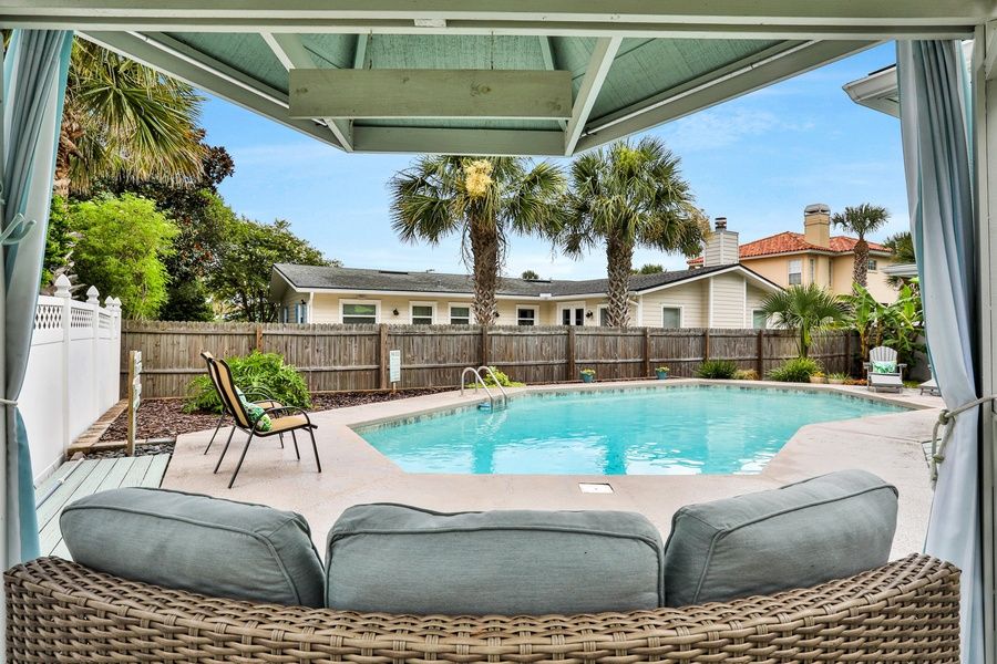 Beachy Keen – Your Serene Oceanfront Escape Swim up to the edge of serenity at Beachy Keen, a beautifully appointed beachfront retreat designed for relaxation, fun, and unforgettable family memories. Just a short stroll from the peaceful, less-crowded shores of Jacksonville Beach, this home offers the perfect blend of comfort, style, and convenience. Step inside to find a thoughtfully decorated interior with a fully equipped kitchen, a cozy dining area, and two spacious living rooms—ideal for entertaining or unwinding after a day in the sun. One of the living spaces features a game table, a smart TV, and direct access to the private backyard pool, creating a perfect indoor-outdoor flow. The highlight of the home is your resort-style outdoor oasis. Lounge poolside with your favorite drink, cool off with a swim, or enjoy meals al fresco under the shaded cabana. The outdoor dining table provides additional space for snacks or evening gatherings under the stars. Located on the quieter end of Jacksonville Beach, this home is just a mile from Sunshine Park, offering a splash pad, skate park, and plenty of space for family fun. You're also close to Sea Walk Pavilion, known for its concerts, outdoor movies, and seasonal festivals. For a day trip, historic St. Augustine—America's oldest city—is just under 30 miles away. Whether you're seeking peace and quiet or vibrant local experiences, Beachy Keen is your home base for an elegant and restful coastal getaway.