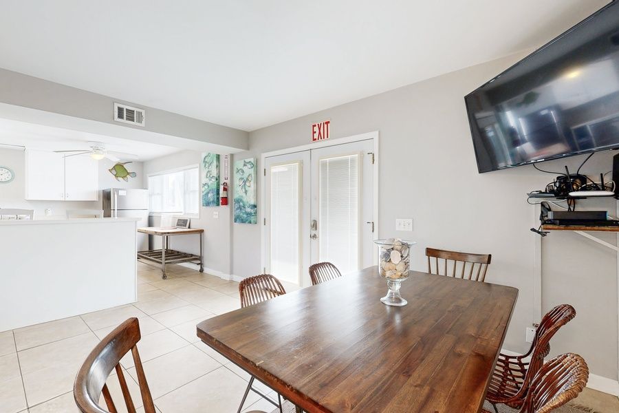 Walk to gorgeous white sands in minutes -- this sparkling coastal hideaway is just across A1A from the beach. Your ground-level 2BR unit is also close to local eateries, shops, and golf courses. Whip up delicious dishes in the sleek full kitchen, dine alfresco in your fenced backyard, and stream favorite shows on three smart TVs. LIVING AREA Make yourself at home in the sunlit living area, detailed with a sleeper sofa and a 50” smart TV. KITCHEN and DINING Channel your inner chef in the well-equipped kitchen, featuring ample counter space and a full suite of stainless steel appliances. Sample appetizers at the kitchen bar for two, then sit down to a home-cooked meal at the dining table for six. BED and BATH Part of a duplex, this ground-level unit sleeps up to six guests between two bedrooms and a full-size sleeper sofa in the living area. Sleep soundly in the tranquil master bedroom, appointed with a cloud-like queen bed and a 40” smart TV. The guest bedroom includes two plush twin beds and a 32” smart TV, while the bathroom has a tub/shower combination. OUTDOOR AREA and AMENITIES Enjoy the fresh air in the shared backyard, configured with alfresco dining for four. You'll also find an outdoor shower located just outside your front door. EXTRA PERKS and MORE DETAILS Complimentary Wi-Fi and an in-unit washer/dryer are provided. Tandem parking is available for two cars in the shared driveway. If traveling with a larger group, consider renting the upstairs unit too for additional space. THE LOCATION Enjoy prime access to sugar-white sands and crystal blue waters -- your sparkling coastal retreat is situated just across the street from beautiful Fernandina Beach! Stroll to shops and eateries along South Fletcher Avenue or visit historic downtown Fernandina Beach for antiquing, nightlife, and more local dining options. Hit the links at the Fernandina Beach Golf Club (1.1 miles), Golf Club of Amelia Island (2.2 miles), and Amelia River Golf Club (3.5 miles). Or practice your serve at the Kraft Tennis Club (2.8 miles) and Amelia Island Plantation Racquet Park (4.9 miles). Please note: This unit is split so A and B share the backyard, driveway and trash cans. Things to know: Living room is equipped with cable tv, bedrooms furnished with smart TV's for easy streaming with your accounts. State/province permit number:DWE5501091 City/town permit number:Unit A/RRDP-000658-2022 City/town permit number:Unit B/RRDP-000660-2022.