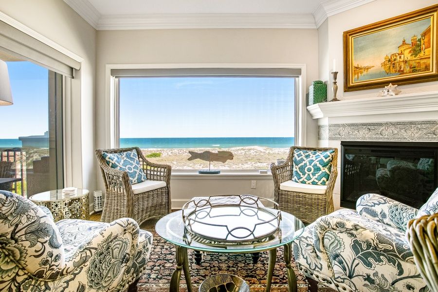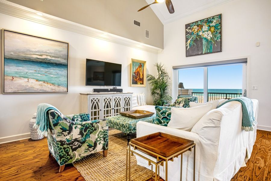 Once you open the front door, you know you are in Paradise, stunning views of the ocean catch up the minute you step inside. The name Sea Chase Penthouse Paradise is true! You have all the amenities of a personalized second home - the owners have rarely rented this property. It is professionally decorated while enjoying the comforts of an ocean-front beach home. Inside, everyone will be spoiled in no time with views of emerald water from nearly every room, an open layout perfect for entertaining, and elegant furnishings that will provide the ultimate comfort. Be sure to bring along your favorite recipes because the fully equipped kitchen is more than ready to assist with meal prep featuring a wine fridge, two coffee makers, beautiful countertops, and two sinks. Not to mention, the breakfast bar seating, brand new outdoor furnishings, and formal dining area will provide plenty of options for gathering over a delicious meal. When you really want to pamper yourself, draw a bath in the jetted tub found in the primary bathroom and relax in bliss each night. A beach vacation never looked so good, so book your stay here at Sea Chase Penthouse Paradise today! THINGS TO KNOW