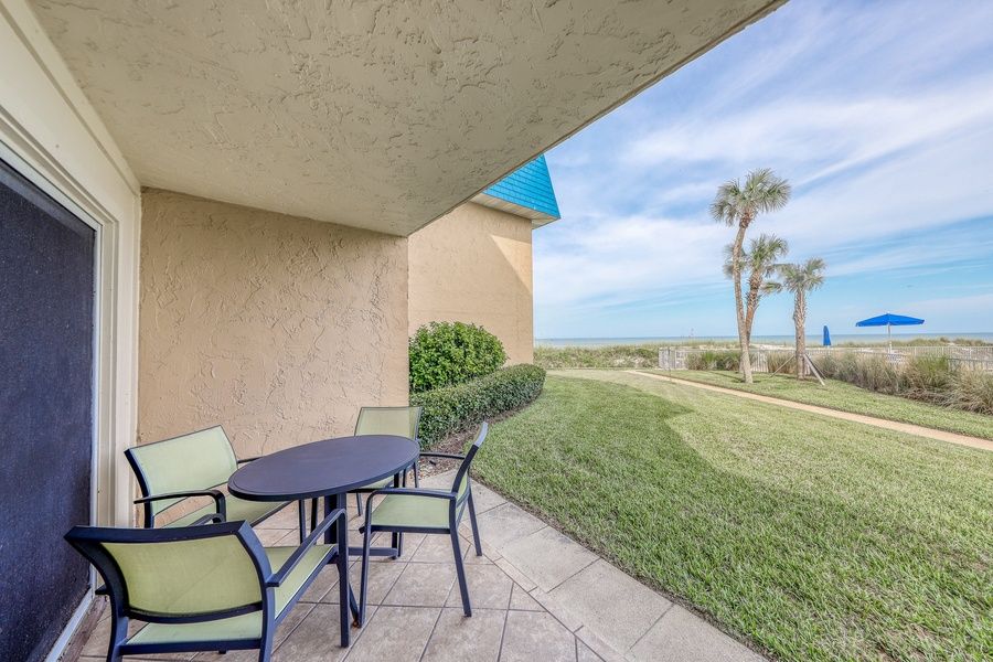 Experience island living with a phenomenal ocean view from the top deck and convenient, walk-out pool access just 25ft from your back door. This beautifully remodeled, ground-floor rental is one of but a few on Crescent Beach that features such a phenomenal beach view. While other complexes are separated from the beach by a large expanse of tall dunes and long boardwalks, this complex sits just seven steps from the beach off the pool deck. Guests of this rental will also enjoy a full kitchen, furnished deck, and access to a shared pool, kiddie pool, tennis courts, BBQ area, and much more. Less than two miles south, hop on the free boat and pay a visit to the Fort Matanzas National Monument. Drive 14 miles north into the heart of St. Augustine, the oldest city in the United States, and discover multiple restaurants, shops, museums, and additional historic sites including the world famous Castillo de San Marcos National Monument. Take a spooky, late-night ghost tour, tour the St. Augustine Distillery, or head out on the water aboard a sunset cruise. Things to know Free WiFi Full kitchen with a dishwasher Central air conditioning Includes a beach umbrella and two beach chairs Snowbird-friendly!.