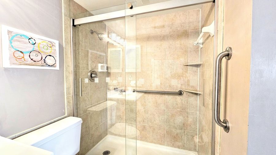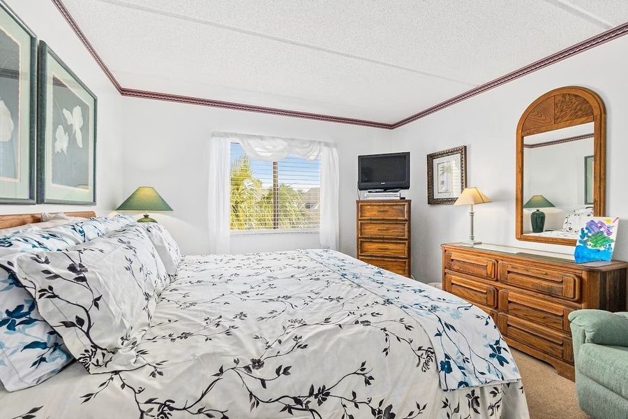 Enjoy the private balcony and soak up the Florida sun! The bright airy corner unit with plenty of windows provides all day sunlight with it’s southern exposure. The villa offers two bedrooms, each tastefully appointed to offer flexibility for families or groups of friends. The master bedroom provides a comfortable haven with a king-sized bed, a large window allowing plenty of sunlight and a master bathroom with new glass shower. The second bedroom is designed with two comfy twin beds, creating a cozy atmosphere for a restful night. There is also a queen pullout sofa for extra guests.