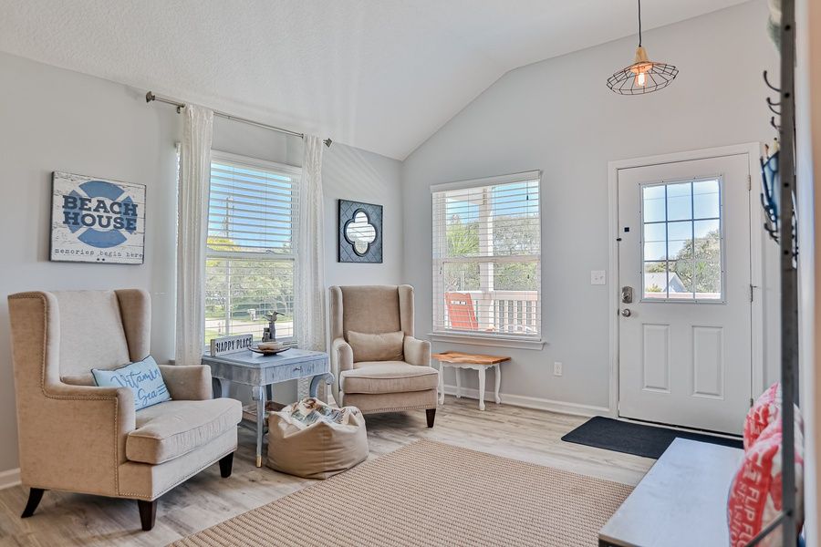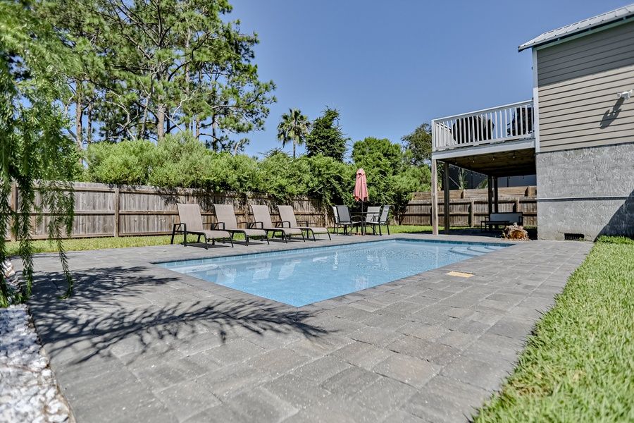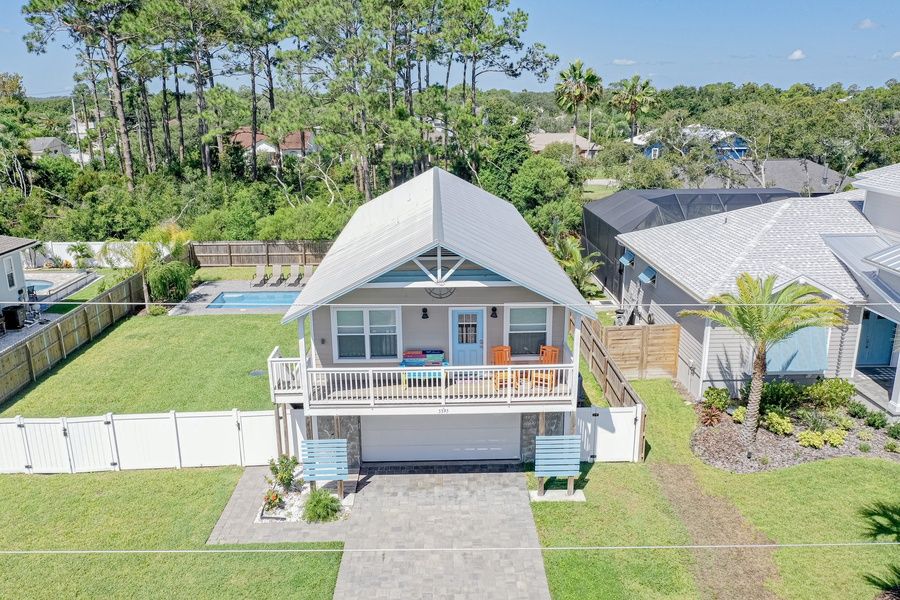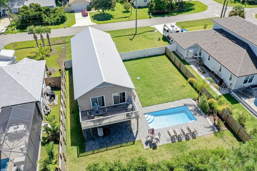 Guest amenities include complimentary Wi-Fi, cable TV, a washer/dryer, and driveway parking for four. OUTDOOR AREA Plunge into a glittering private pool in your fully fenced backyard. Sizzle lunch over the BBQ grill, or enjoy family games on the expansive lawn. There's plenty of room to sip coffee on a furnished front balcony. On the back balcony, a four-person patio table offers a wonderful spot to dine alfresco. THE LOCATION While 5 minutes' drive away, the 1,600-acre Anastasia State Park boasts a 4-mile long white-sand beach, abundant wildlife, and opportunities for swimming, kayaking, and fishing. Restaurants and shops are steps from the house, and there's a kids' park just blocks away. Family attractions include Marineland Dolphin Adventure (17-minute drive) and Anastasia Miniature Golf (7-minute drive). Save time to explore St. Augustine's historic downtown (10-minute drive). Explore cobbled lanes, charming Spanish Colonial architecture, top-notch museums, and flit between numerous local shops and restaurants.