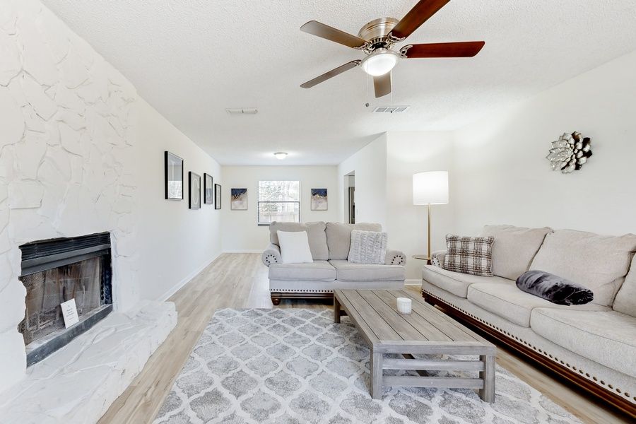 Back home, the enclosed yard is sure to be a highlight for younger guests, offering plenty of space for play. Indoors, stock up the fridge and prepare all your favorite dishes in the well-equipped, full kitchen, complete with a suite of stainless steel appliances and an intimate breakfast bar. Meet up around the dining table for mealtimes or family game nights, and then settle into the matching sofas in the living area and stream all your favorite TV channels into the evening. (The fireplace is not operational.)