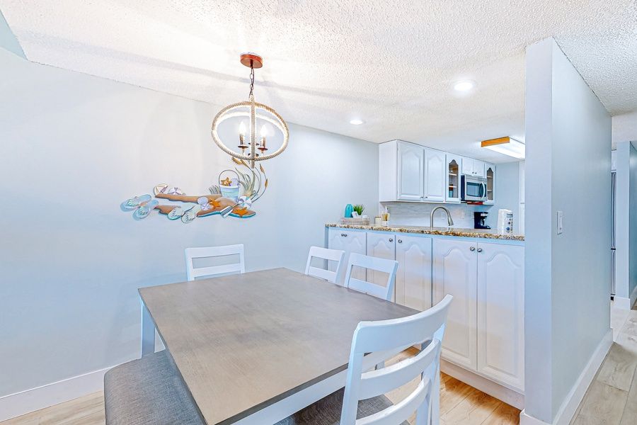 Inside, this condo boasts a well-equipped, full kitchen with stainless steel appliances to make meal prep a breeze. Dine together at the nearby table - perfect for family game nights - and then kick back and relax on the matching sofas in the living area where you can stream all your favorite TV channels using your own accounts including Disney+, Peacock, and Paramount. Cable TV offers additional entertainment.