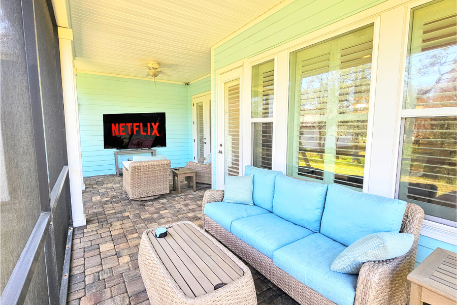 Outdoor lanai with TV The perfect spot to unwind.