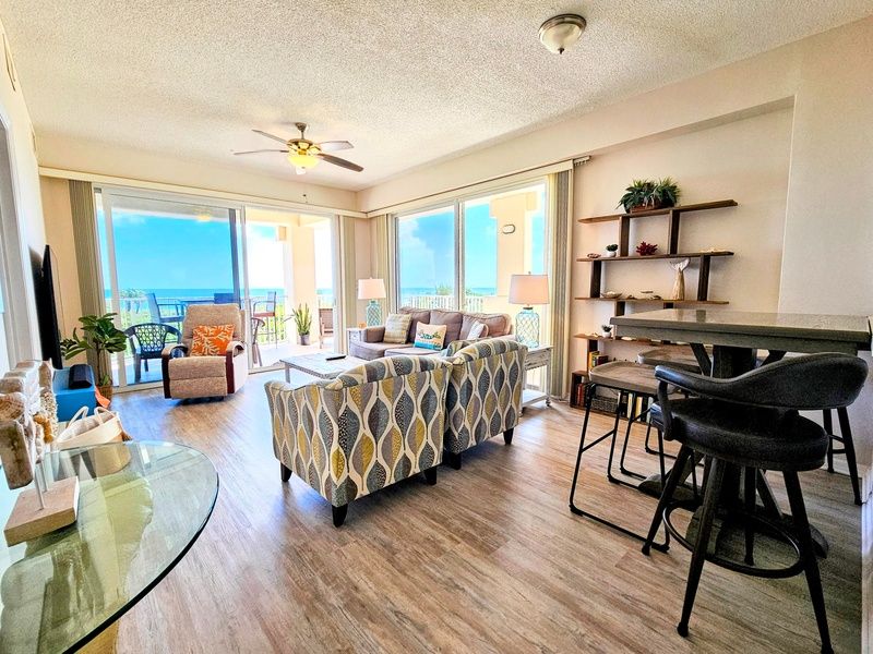 Prepare meals in the brand new fully stocked kitchen, equipped with all the essentials, even a wine fridge!. Enjoy the views from the dining table for up to six. The condo also provides a washer and dryer, beach chairs, and beach towels, ensuring that you have everything you need for an unforgettable beach getaway.