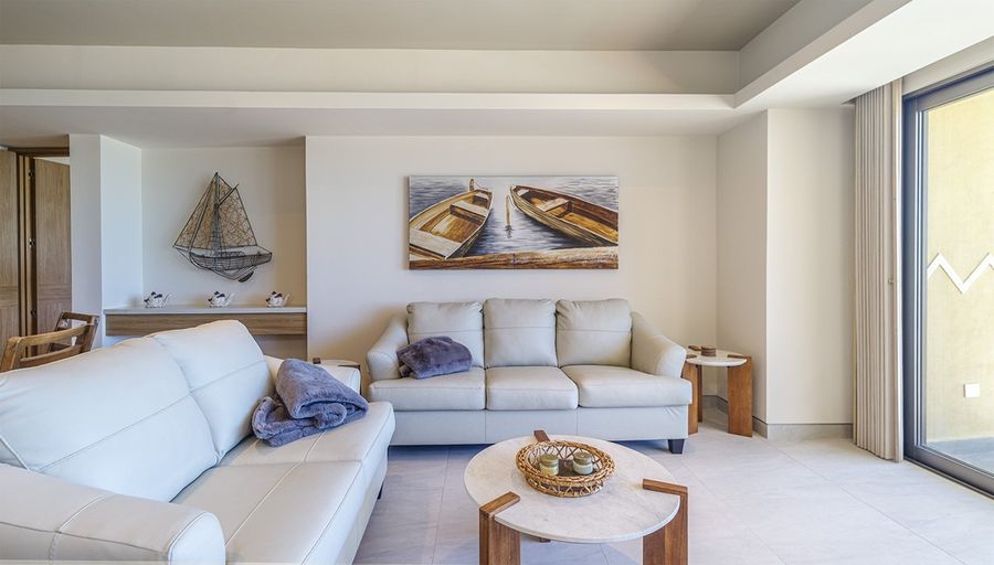The main bedroom forms a private suite, with its king bed, sofa, table, and bathroom. The hotel style second bedroom also has a king bed, and its own bathroom.