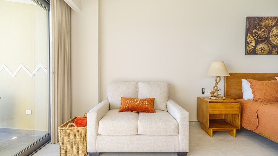 Hotel room style layout in this Sonoran Star Resort unit. Combining a living room \bedroom area, along with an elegant bathroom for two, and a kitchenette area as well. Enjoy the furnished balcony.