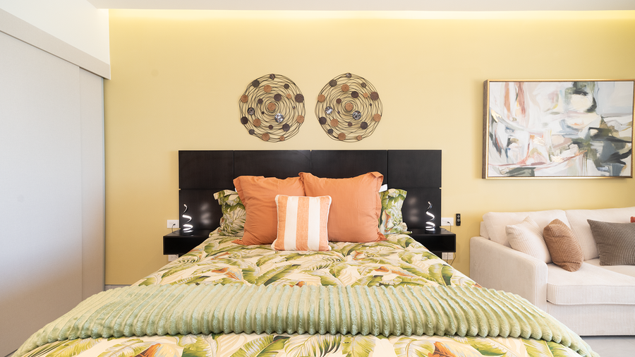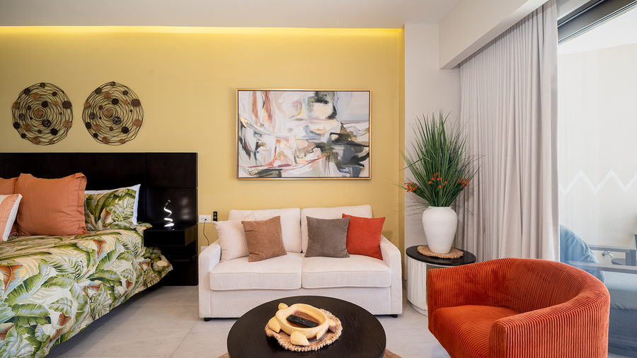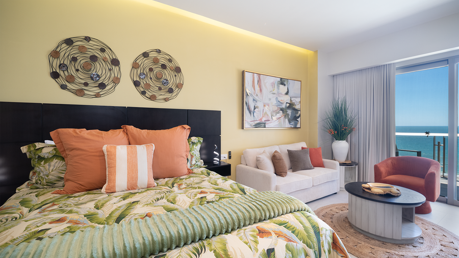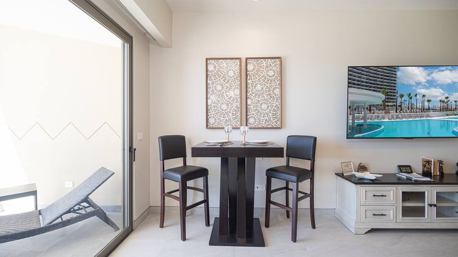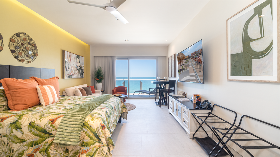 Classic studio unit that provides a roomy and comfortable space for a Rocky Point vacation. Enjoy the luxury of Sonoran Star Resort. The unit offers a king sized bed and table for two. There is a sofa that converts to an additional bed, along with a bathroom and kitchenette area. Here you find a refrigerator, sink, microwave, coffee maker, and other small appliances. There is also a refrigerator, washer and dryer, and lots of closet space. The bathroom has a two sink vanity and a walk-in shower.