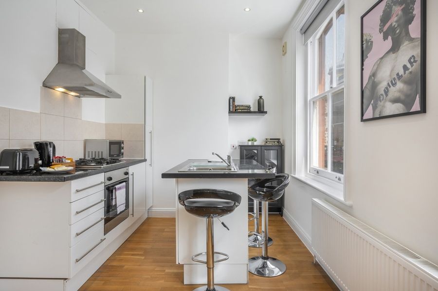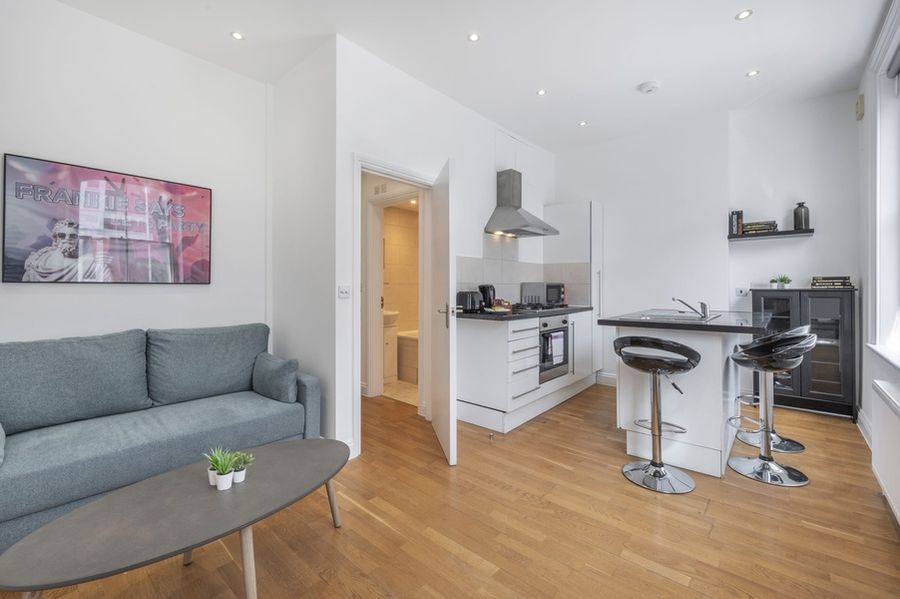 Experience chic urban living at Dionysus' Den. This stylish one-bedroom apartment blends modern luxury with classic charm in the heart of Fitzrovia. Enjoy a cozy, well-appointed space with top-notch amenities, perfect for a sophisticated city stay.
