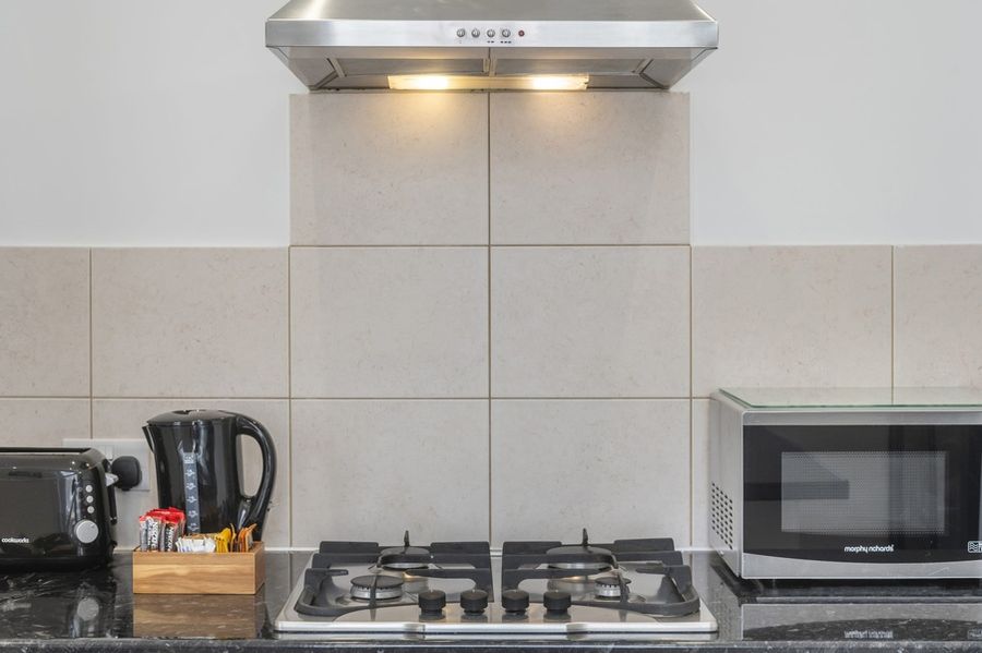 •Modern kitchen appliances, including electric oven, washing machine, Nespresso coffee machine, toaster, and kettle