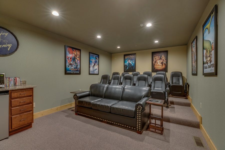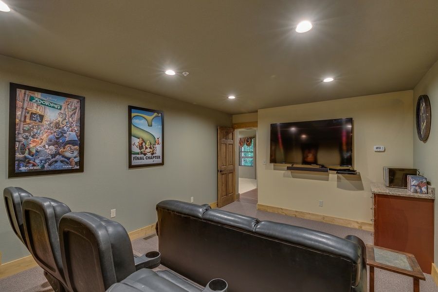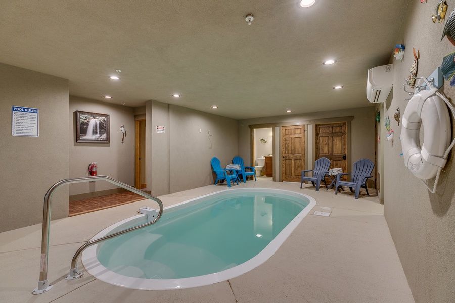 The chalet is rich in entertainment options. The game room features a pool table, air hockey, and a multicade arcade game, providing endless fun for guests of all ages. Enjoy year-round swimming in the indoor pool, heated to a comfortable 82 degrees. Movie lovers will appreciate the home theater, complete with plush seating and a 70" flat-screen TV for a cinematic experience.