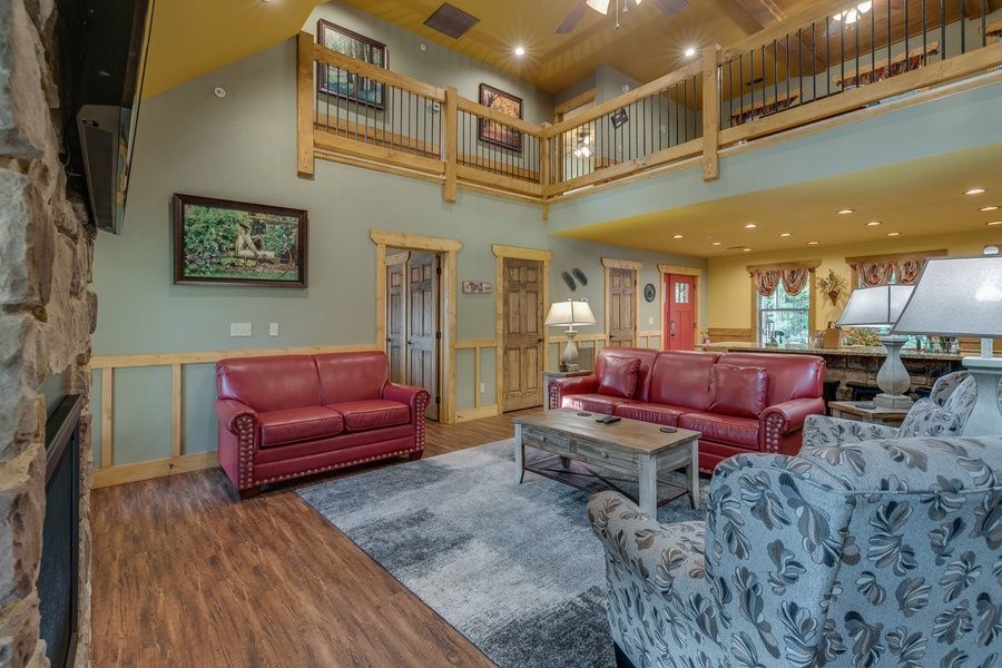 Experience the ultimate getaway at "Swimmin' in the Smokies," a stunning 6-bedroom, 6-bathroom chalet nestled in the tranquil Laurel Estates at the Glades Resort. This expansive 4,415-square-foot retreat blends rustic charm with modern luxury and is ideal for families and groups of up to 16 guests.