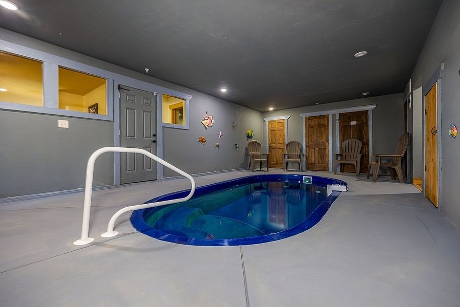 Pirates Peak offers an array of entertainment options. Guests can enjoy a private indoor pool, ensuring year-round enjoyment for all ages. Multiple game rooms provide endless amusement with a pool table, air hockey, shuffleboard, poker table, and multicade arcade game. After a day of adventure, guests can unwind in the hot tub on one of the three expansive decks or enjoy a delightful outdoor dining experience with the grill.