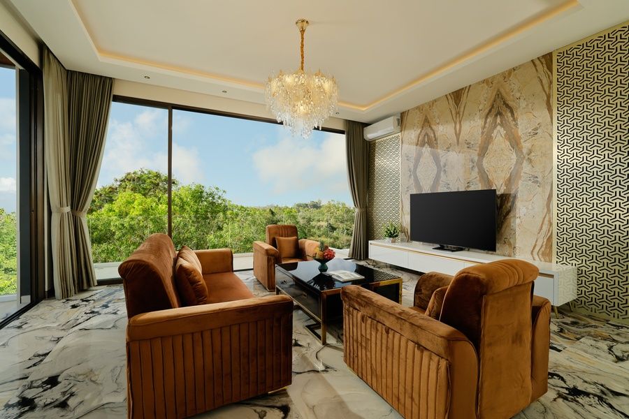 Nestled in the cliffs of Uluwatu, Villa Kalem Uluwatu is a spacious, modern retreat designed for comfort and relaxation. With polished marble floors, elegant chandeliers, and open-plan living spaces, this multi-level villa offers the perfect setting for a memorable stay.
