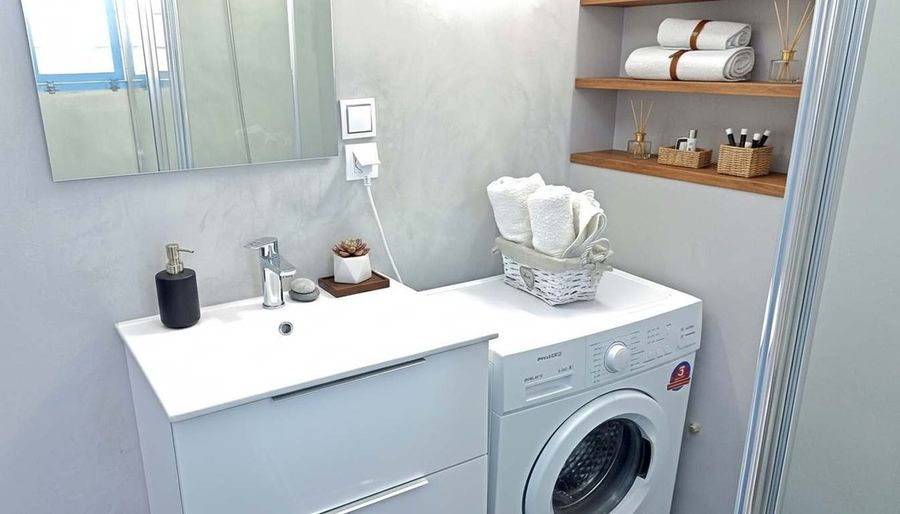 Blue Marsis Apt is a thoughtfully designed studio apartment that comfortably hosts up to four guests, perfect for couples, friends, or small families. The open-plan layout includes a comfortable double bed and a sofa bed, offering flexibility without sacrificing space. Air conditioning ensures comfort during the summer months, while quality bed linens, towels, and essential amenities are provided for a worry-free stay. The modern bathroom features a full shower, hair dryer, shampoo, and fresh towels.