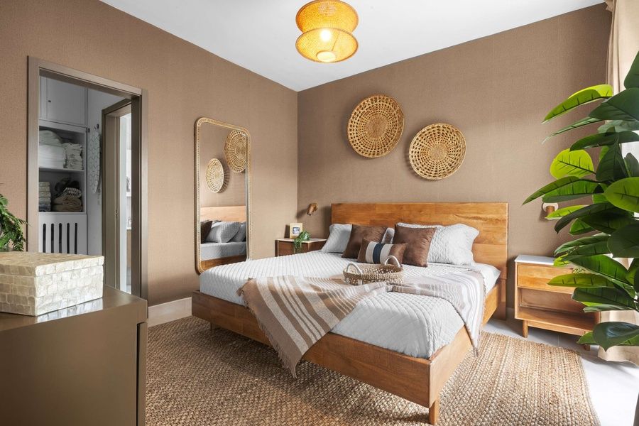 The villa features three comfortable bedrooms, each thoughtfully furnished with quality beds, air conditioning, and ample storage space to ensure restful nights. The layout offers a perfect balance between private sleeping areas and inviting shared spaces.