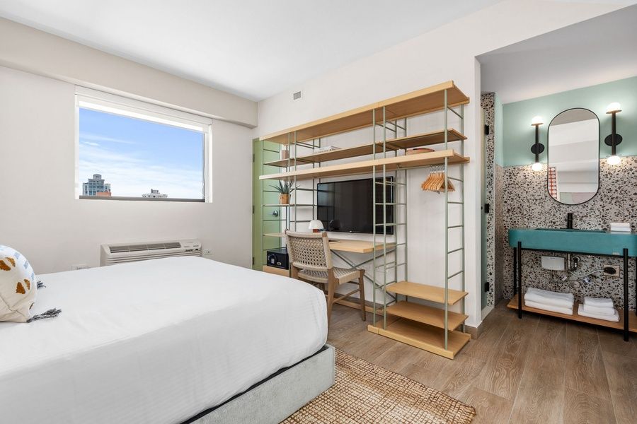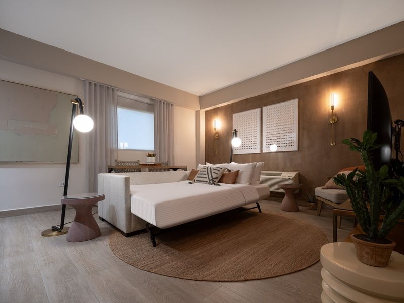 Experience the epitome of comfort and convenience in our Studio Suite Plus, where every detail is meticulously curated to elevate your stay. Unwind in luxury with a plush king bed, spacious living area, sofa bed, full bathroom, and ample desk and closet space, complemented by in-room streaming services, high-quality towels, and premium bath products. Indulge in exclusive amenities such as access to a modern gym and a rooftop pool boasting stunning city views. Our attentive daily housekeeping services ensure a seamless experience, while complimentary Wi-Fi keeps you connected throughout your stay. Whether you're here for business or leisure, our Studio Suite Plus offers the perfect blend of sophistication and relaxation.