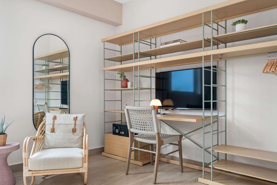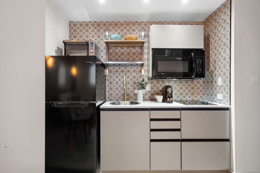 space, complete with a plush king bed, convenient sofa bed, and ample workspace at the desk. The full bathroom offers a serene retreat, enhanced by high-quality towels and premium bath products for your indulgence. Savor home-cooked meals prepared in the well-appointed kitchenette, or gather around the dining table for a cozy meal. Stay entertained with in-room streaming services, while complimentary Wi-Fi keeps you connected throughout your stay. Take advantage of exclusive amenities, including access to a fully equipped gym and a rooftop pool offering panoramic city views. With daily housekeeping services ensuring a seamless experience, our one bedroom apartment is the perfect choice for a luxurious and memorable stay.