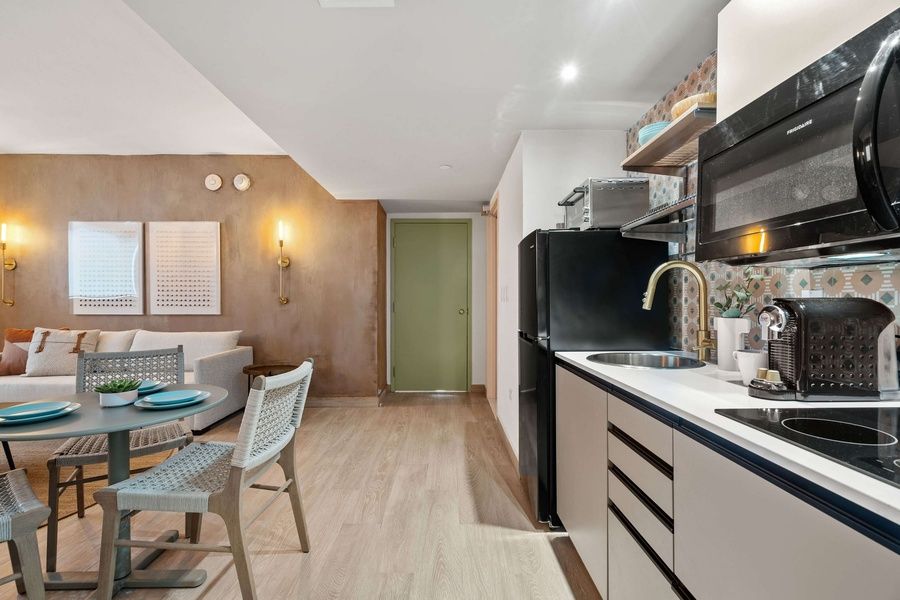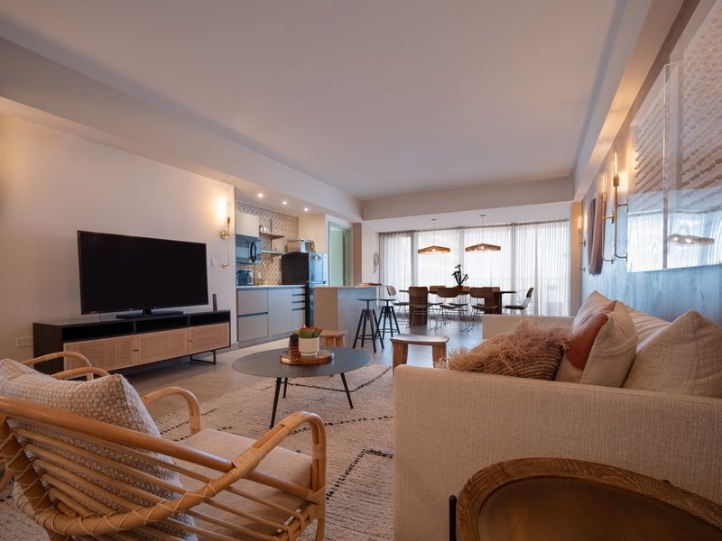 Escape to luxury in our three-bedroom apartment, where comfort meets convenience for the ultimate group retreat. This spacious suite features 1 living room with two inviting sofa beds, 3 separate bedrooms with spacious king beds and 3 bathrooms with a shower and free toiletries, and dedicated workspaces in every room, everyone can unwind in style. Lavish bathrooms offer indulgent relaxation, while the generously sized living areas provide ample space for gathering and entertainment. The air-conditioned suite features a flat-screen TV with streaming services, a private entrance, soundproof walls, a tea and coffee maker as well as sea views. Whip up meals in the well-appointed kitchenettes or dine al fresco on the charming balcony with stunning beach views. With daily housekeeping services ensuring a pristine environment, your getaway with friends or family will be both seamless and unforgettable.