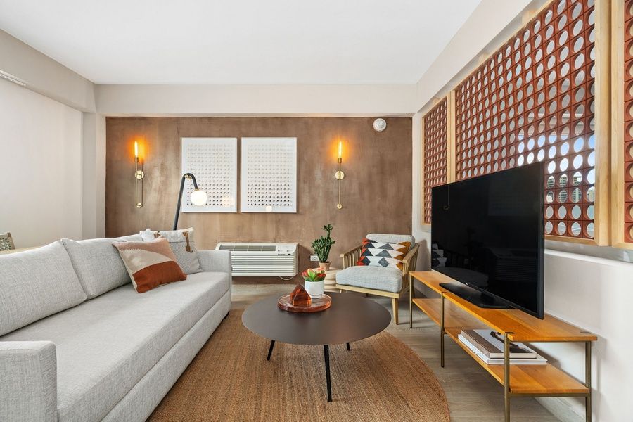 Immerse yourself in the modern comfort luxury of our expansive four bedroom apartment, where every detail is meticulously crafted to ensure an unforgettable stay. Relax in one of the four king-bedded rooms, each equipped with a dedicated desk for convenience. Enjoy the comfort of three sofa beds spread across the spacious living rooms, including two situated within their own private spaces. Refresh yourself in one of the four full bathrooms, complete with high-quality towels and premium bath products. Indulge in home-cooked meals prepared in one of the three well-appointed kitchenettes or gather around the two dining tables for a delightful dining experience. Take in the breathtaking balcony views while savoring your morning coffee or evening cocktail. Stay entertained with in-room streaming services and stay connected with complimentary Wi-Fi. Enhance your stay with exclusive access to a fully equipped gym and a rooftop pool offering panoramic vistas. With daily housekeeping services ensuring a pristine environment, our four-bedroom apartment promises a luxurious retreat for families or groups of friends.
