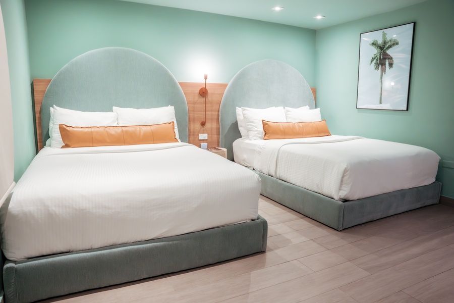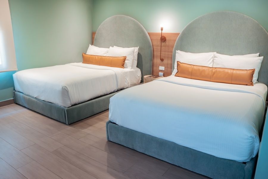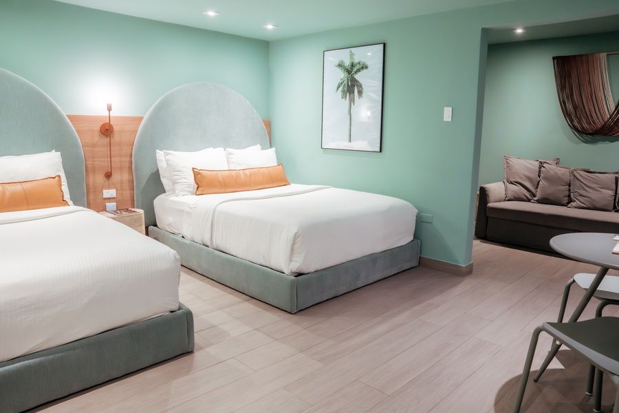 Experience elevated comfort in the Double Queen Room with Private Hot Tub. This spacious room features two plush queen beds, a custom closet, and a work desk with complimentary Wi-Fi. The private bathroom includes a spacious shower, premium bath products, and soft towels. Unwind with in-room streaming services on the flat-screen TV or relax on your private terrace with a hot tub. Daily housekeeping upon request and thoughtful amenities ensure a serene, elevated stay.