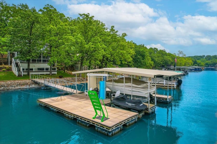 Dock: Enjoy a private boat dock experience for swimming and fishing.