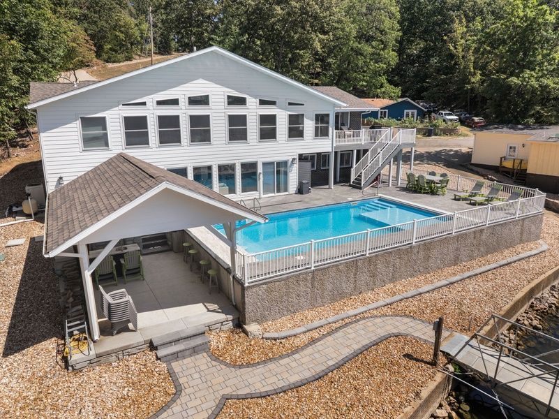 Located in Sunrise Beach, at the 13 MM, you are dead center to go to the West Side of the lake, including local attractions such as Captain Ron's, The Cave, Paradise, Lake House 13 Bar and Grill, and the Sunrise Beach Safari. Or head over the bridge to the East side, where you find the Bagnell Dam Strip with over 20 local favorites such as the Malted Monkey ropes course, Casa Blanca, Neon Taco, Tucker Shuckers, Old Time Photos, and Grandma's Candy. If you are looking for finer dining with a casual atmosphere, you must visit Baxters or JB Hooks, located just over the bridge as well. No matter what you are looking for, this home is close to everything!