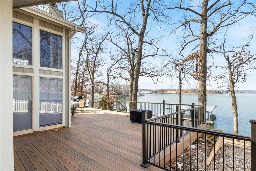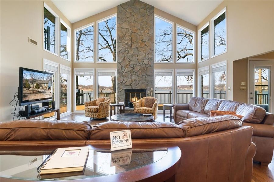Welcome to our charming lakeside retreat! Nestled amidst serene natural surroundings, this 4-bedroom, 3-bathroom house offers the perfect escape for your vacation. With panoramic views of the glistening lake, a private dock, and a cozy fire pit, you'll find relaxation and adventure right at your doorstep. Bedrooms and Sleeping Arrangements: The house features three spacious bedrooms, each tastefully decorated for comfort and style. Bedroom 1: (Master Bedroom) - Equipped with a plush king-sized bed and ensuite bathroom. Bedroom 2: (Second Bedroom) - Offers a comfortable queen-sized bed and easy access to a shared bathroom. Bedroom 3: (Third Bedroom) - Perfect for kids or additional guests, with two sets of beds. Bathrooms: You'll find three full bathrooms, ensuring convenience for all guests. Each bathroom is well-appointed with modern fixtures and plenty of fluffy towels for your comfort. Living and Dining Spaces: The open-concept living area is ideal for gathering with friends and family, with floor-to-ceiling windows to view the lake. The dining area offers seating for four with additional seating at the bar top, with a table overlooking the lake, perfect for enjoying meals together. Kitchen: Channel your inner chef in the fully equipped kitchen, complete with all the items you need, appliances, and ample counter space. Whip up delicious meals using fresh ingredients from local markets, or simply brew a cup of coffee to savor on the deck. Outdoor Amenities: Step outside to your own private oasis, where the beauty of nature awaits. Lounge on the deck with your morning coffee, soaking in the tranquil lake views. Spend evenings gathered around the fire pit, roasting marshmallows and sharing stories under the starlit sky. With your own private dock, you can easily launch a kayak, go fishing, or simply bask in the sun by the water's edge. Step into your private retreat with our 10'x16' or 12'x36' boat slips. Enjoy the Scenic View of the water and the freedom to set sail whenever inspiration strikes. Experience waterfront living at its finest. Additional Features: High-speed Wi-Fi and cable TV are provided for your entertainment needs. A washer and dryer are available for your convenience, so you can pack light and stay fresh throughout your stay. Ample parking is available on the property for multiple vehicles. Location: Situated in a peaceful lakeside community off the main channel, you'll enjoy a sense of seclusion while still being within easy reach of local attractions. Explore nearby hiking trails, go boating on the lake, or discover charming shops and restaurants at The Strip. Whether you're seeking relaxation or outdoor adventure, this lakeside retreat offers the perfect setting for your next getaway. Book your stay today and start making memories that will last a lifetime! -Guest Must Agree to and Sign Rental Agreement -No Parties allowed on the property -Minimum booking age, 25 -No smoking of any kind -No pets -No persons over the 10 occupancy max allowed on the property -Outdoor cameras in the parking area and Ring Doorbell. -Cancelations subject to 4percentage credit card fee Keyless entry Located in Sunrise Beach, you are dead center to go to the West Side of the lake, including local attractions such as Captain Ron's, The Cave, Paradise, and the Sunrise Beach Safari. Or head over the bridge to the East side, where you find the Bagnell Dam Strip with over 20 local favorites such as the Malted Monkey ropes course, Casa Blanca, Neon Taco, Tucker Shuckers, Old time photos, and Grandma's Candy Kitchen. If you are looking for finer dining with a casual atmosphere, you must visit Baxters or JB Hooks, located just over the bridge as well. No matter what you are looking for, this home is close to everything! Easy Access to Hwy 5 or Hwy 54.. Salisbury Property Management has engaged VacayHome to ensure this listing contains all the information you need and that it is easy for you to book via search engines & online channels. VacayHome is connected directly to the property management system used by Salisbury Property Management which ensures that availability & rates are up-to-date & accurate. When you book, VacayHome processes payment on behalf of Salisbury Property Management and a charge will appear on your statement as "VacayHome". VacayHome will send you a confirmation e-mail that contains all the information you need to prepare for your vacation including arrival instructions. VacayHome has a 24 x 7 team to assist you with any questions or concerns you may have prior to arrival. To access VacayHome, obtain the customer support telephone number or read FAQs, please click on the links at the bottom of this page.