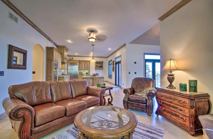 INDOOR LIVING: Smart TVs, 4-person breakfast bar, wine fridge, wet bar w/ 2-person breakfast bar, ceiling fans