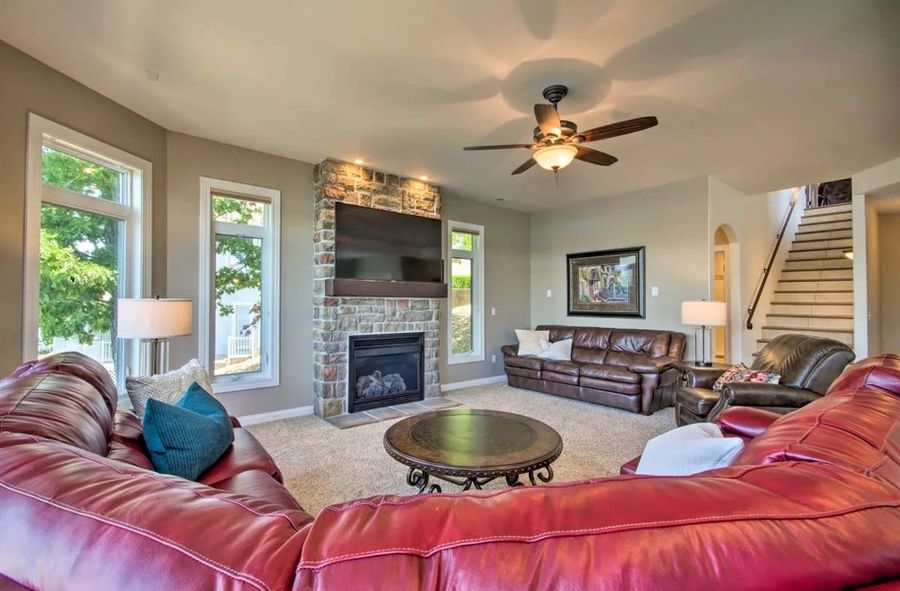 This Sunrise Beach house is located in the upscale community of Porto Cima and boasts sought-after amenities that’ll enhance any getaway. From this grand lakefront vacation rental, you can lounge poolside, unwind on the deck, or enjoy dinner with million-dollar main channel views from the bar area. At this 5-bedroom, 4.5-bath Waterford Retreat, you’ll have access to some of the best golf courses in the Midwest and be an easy drive away from waterfront dining, the strip, and shopping!