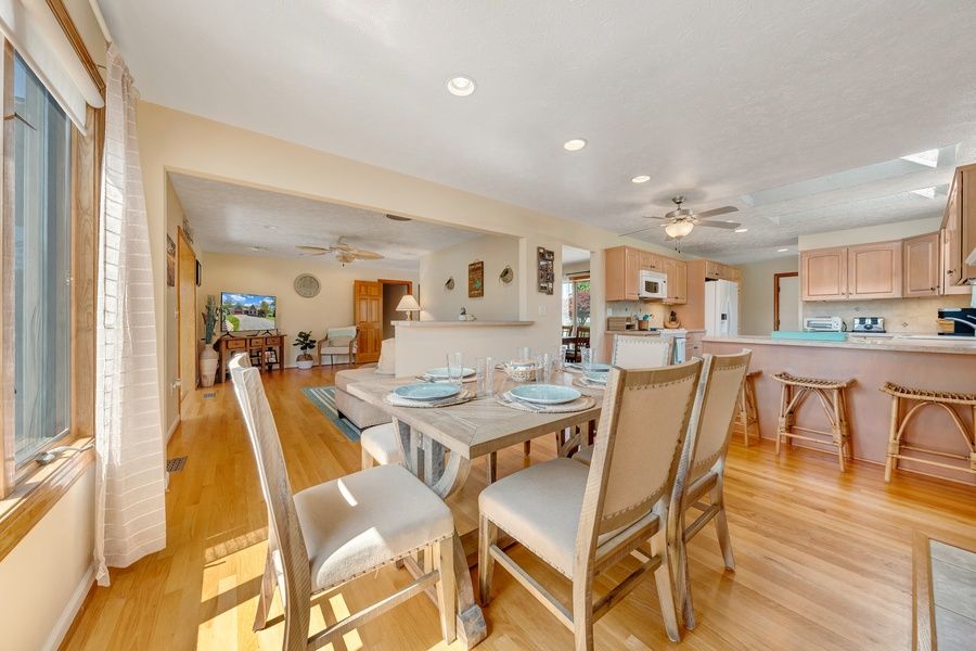 Step inside to bright, open spaces filled with natural light and beautiful views of the lake. Relax in the comfortable living areas, share meals indoors or outside on the large deck, and enjoy time together in the game room, stocked for hours of fun.
