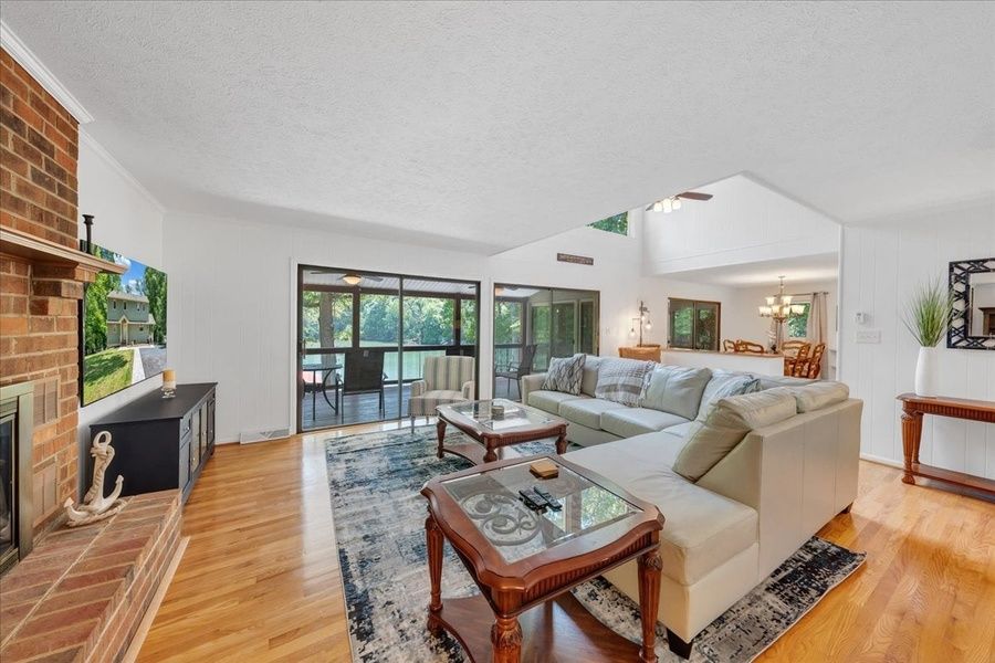 With 3 bedrooms and 4 bathrooms, this inviting home comfortably accommodates up to 6 guests (per Bedford County regulations). Inside, you’ll find soaring ceilings, warm wood accents, and plenty of space to unwind. Curl up with a book in one of the cozy reading nooks, gather in the open living and dining areas, or relax in the sunroom overlooking the lake.