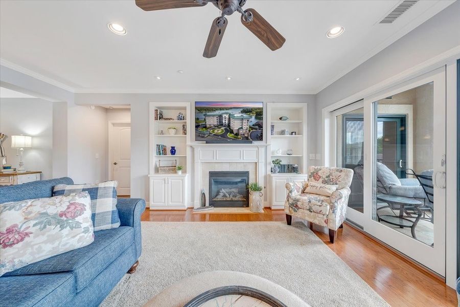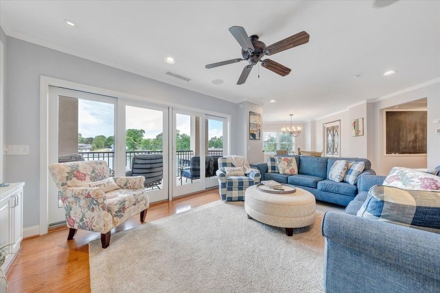 Welcome to your perfect lake escape - a large 4-bedroom (all with king-size beds), 3-bath condo! 2,385 sq ft! Experience stunning views from two lake-facing bedrooms and an open living/dining room. Views from the spacious balcony are perfect for sunrise coffee, post-pool lounging, and nighttime stargazing. Enjoy fast Wi-Fi, Roku TVs, board games and a well-equipped kitchen. Located next to the vibrant Bridgewater Plaza, you'll have walking access to restaurants, shopping, ice cream, coffee, mini golf, boat rentals, and an arcade. The gated community features garage parking, pool access, and day docking for boats available in front of the condo - for overnight docking please call or email for details. Pet-friendly (1 dog allowed, 50lb limit), with all linens and amenities included. This unbeatable main floor (no stairs!) location pairs amazing views with convenience and comfort for the ideal lakeside getaway! 3 night minimum stay. Gas fireplaces available for October - March rentals only.